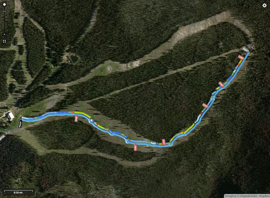 My last lesson in the “1 2 3” program was on December 27. After the lesson, I recorded my bunny hill practice runs with my phone’s GPS; here they are shown on a satellite view. The little red marks are all the places I stopped.
